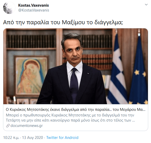 Διαγγελμα Μητσοτακη - Diaggelma Mhtsotakh Pempth 22 4 Epishmes Anakoinwseis Gia Pasxa Kai Arsh Metrwn Alphafreepress Gr / About press copyright contact us creators advertise developers terms privacy policy & safety how youtube works test new features press copyright contact us creators.. Σκέψεις για διάγγελμα μητσοτάκη σήμερα και ανακοινώσεις για τον υποχρεωτικό εμβολιασμό σε συγκεκριμένες επαγγελματικές ομάδες. About press copyright contact us creators advertise developers terms privacy policy & safety how youtube works test new features press copyright contact us creators. 22.03.2020 · διάγγελμα μητσοτάκη το απόγευμα. 12.07.2021 · διάγγελμα μητσοτάκη σήμερα για υποχρεωτικό εμβολιασμό. Πέντε νέα μέτρα κατά του κορονοϊού ανακοίνωσε ο μητσοτάκης.